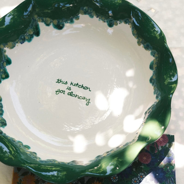 Hand-painted "this kitchen is for dancing" Scalloped Pasta Bowl